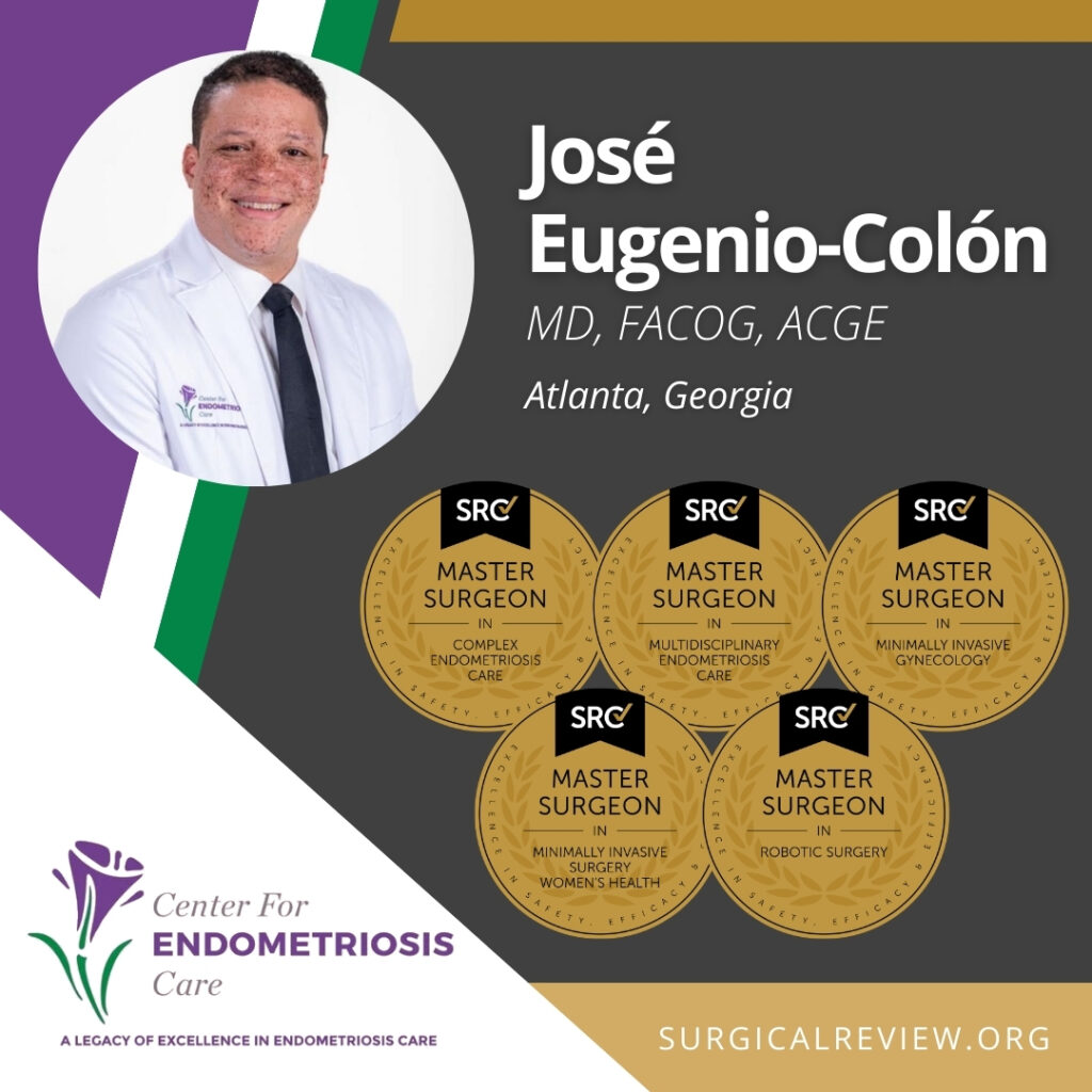 José D. Eugenio-Colón, MD, FACOG, ACGE has been multi-accredited by SRC as a Master Surgeon in Complex Endometriosis Care, Multidisciplinary Endometriosis Care, Minimally Invasive Gynecology, Minimally Invasive Surgery Women’s Health and Robotic Surgery. Dr. Eugenio-Colón practices at Northside Hospital Atlanta and Center for Endometriosis Care in Atlanta, Georgia.