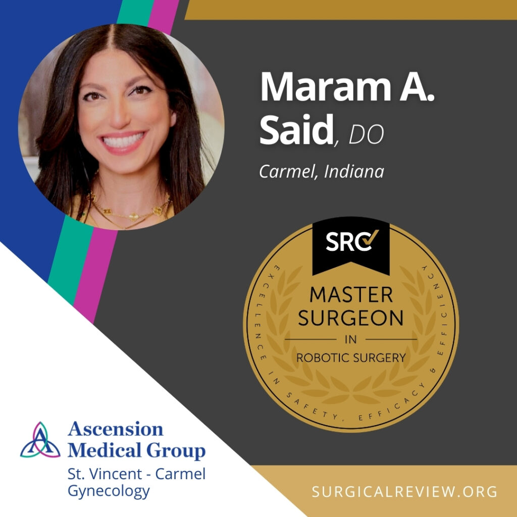 Maram A. Said, DO has been accredited as an SRC Master Surgeon in Robotic Surgery. Dr. Said practices at Ascension St. Vincent Carmel and Ascension Medical Group St. Vincent – Carmel Gynecology in Carmel, Indiana.