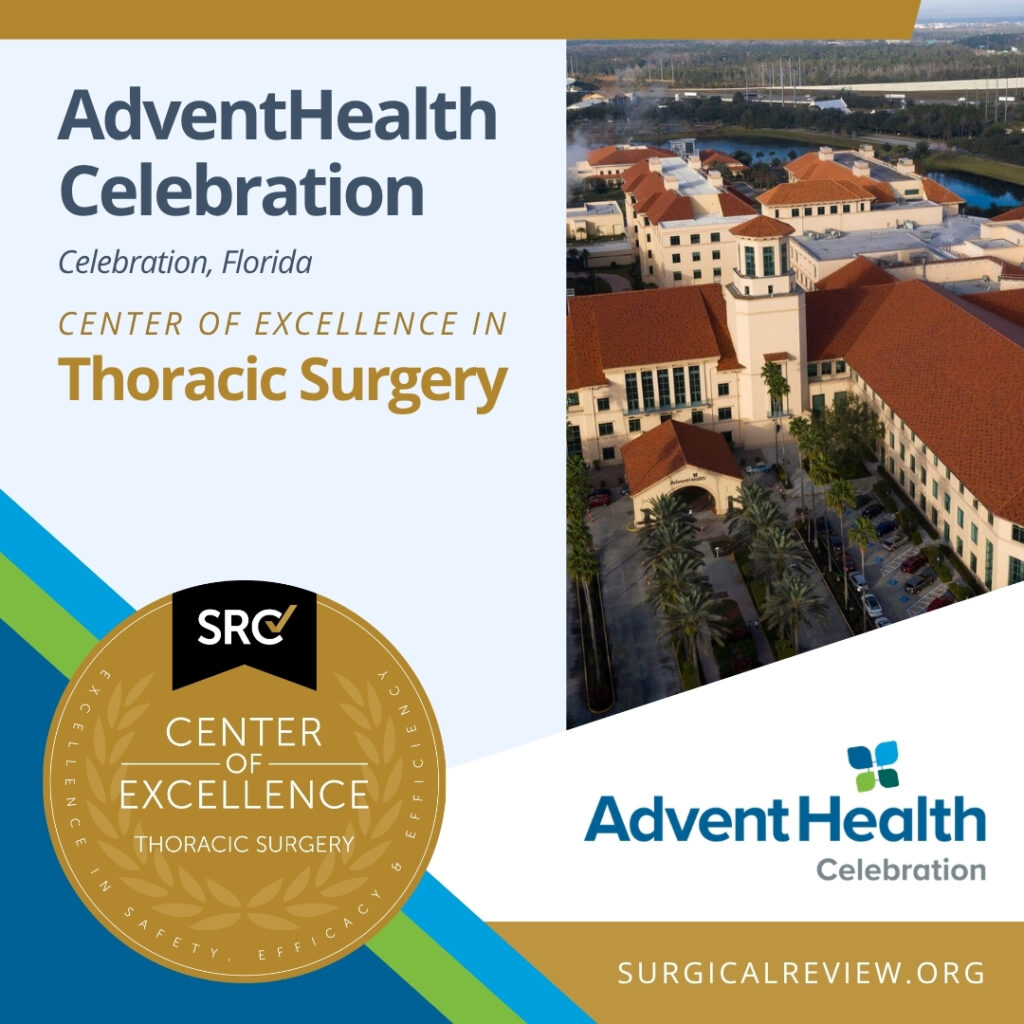 AdventHealth Celebration in Celebration, Florida has been accredited as an SRC Center of Excellence in Thoracic Surgery.