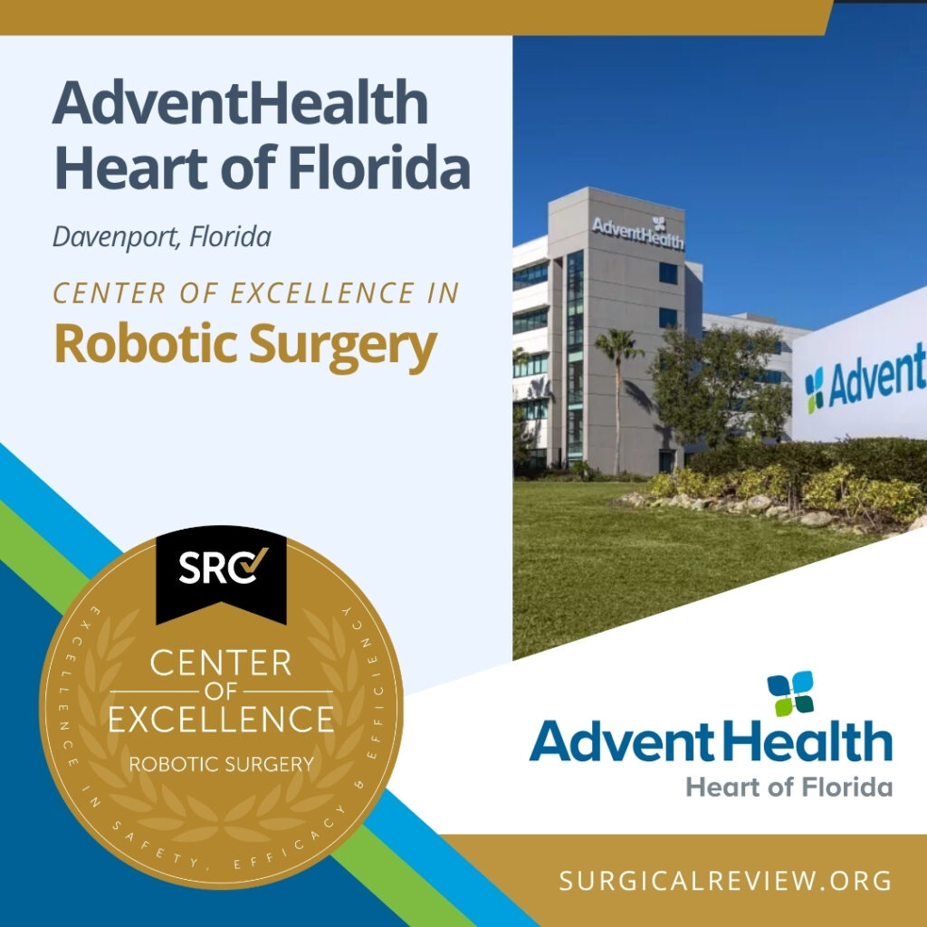 AdventHealth Heart of Florida in Davenport, Florida has been accredited as an SRC Center of Excellence in Robotic Surgery.