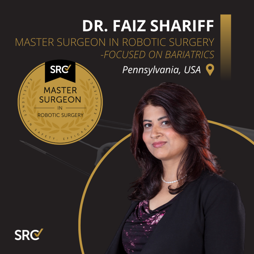 Dr. Faiz Shariff, MD, FACA, FASMBS is a metabolic and bariatric surgeon specializing in robot-assisted surgery to provide her patients with minimally invasive surgical options and improved patient outcomes. Practicing at WellSpan York Hospital in York, Pennsylvania, Dr. Shariff is passionate about helping her patients lead healthier lives and improving not only their physical health, but their overall well-being through increased confidence and quality of life. In 2023, Dr. Shariff became SRC-accredited as a Master Surgeon in Robotic Surgery.